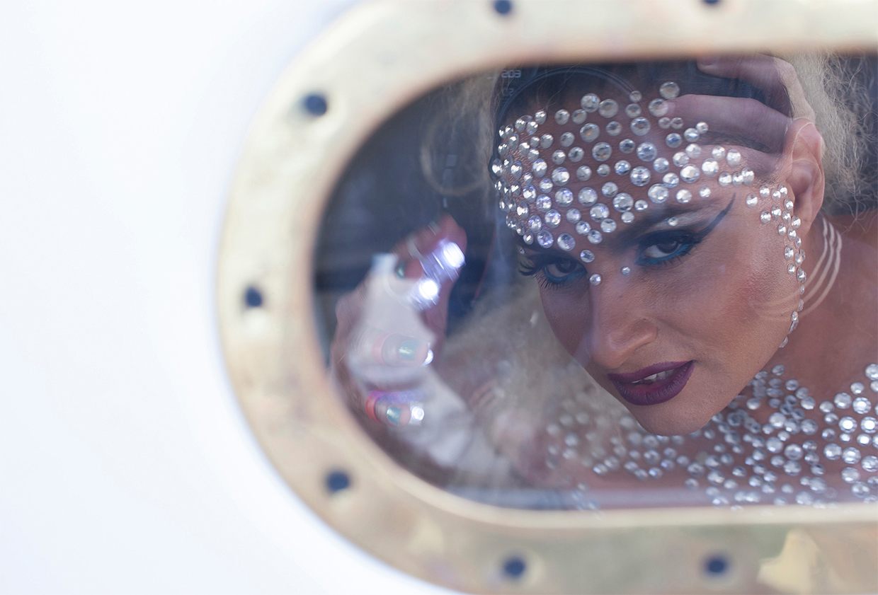 2014. Interactive/performative installation in the San Francisco Bay. This is a collection of images of a floating peepshow anchored in the San Francisco Bay comprise of 4 sailboats built into performance spaces for drag and sex shows. Supported by Southern Exposure, I curated and organized more than 25 performance artists, strippers, and drag queens, from two recently shuttered iconic queer businesses, The Lusty Lady and Esta Noche. Each of the performers were invited to create their own performances that took place inside the hulls of each sailboat. Audience members were shuttled in small inflatable boats from shore to the flotilla and viewed the performances through a porthole that was built into each of the boat entrances. I brought in 5 boat captains to host more than 1000 people aboard their boats turned floating stage over the course of 4 nights.